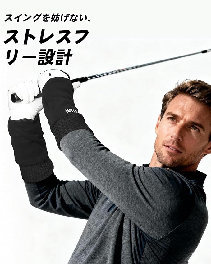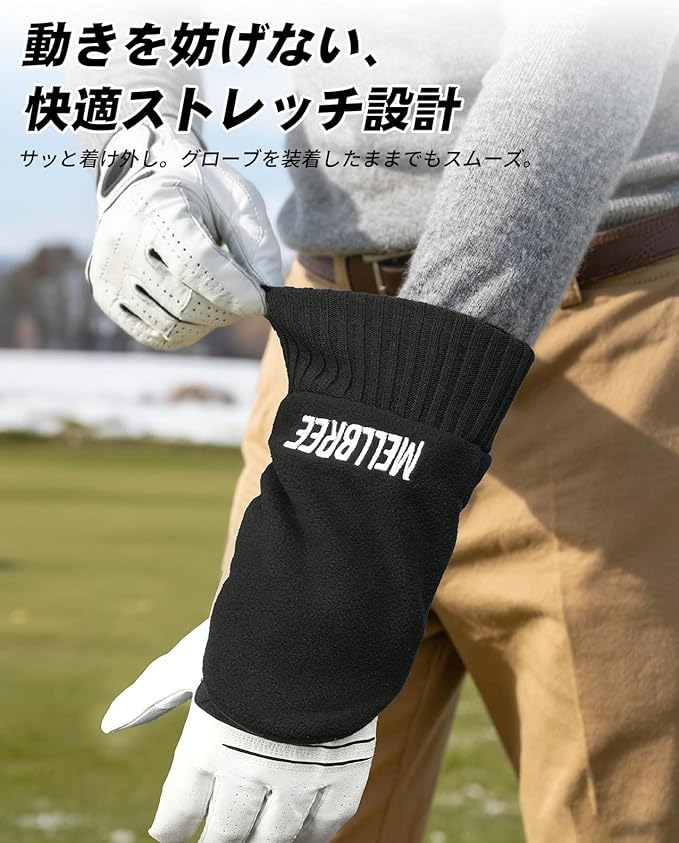 [Mellbree] ゴルフ グローブ 防寒対策 ハンドウォーマー ミトン 冬ゴルフの必需品 ショット時も外さない 暖かい フリース 手袋 両手 メンズ レディース
