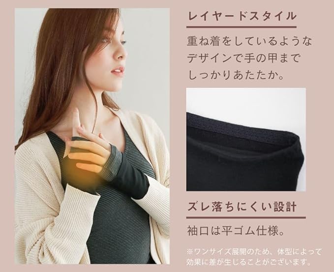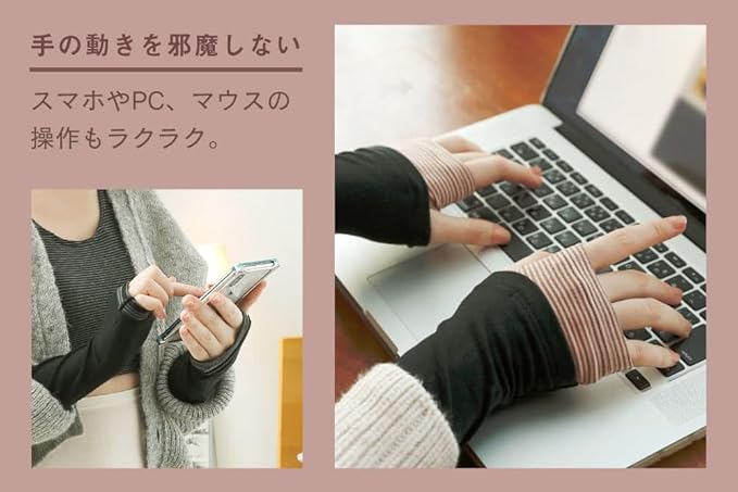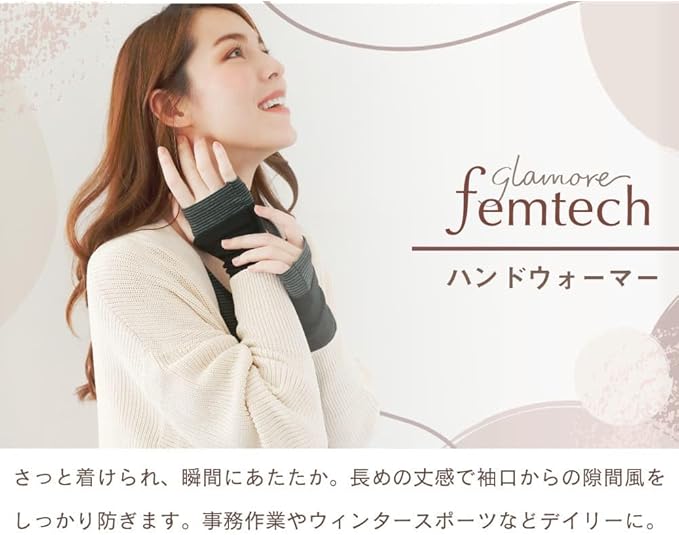 ✅【glamore femtechシリーズ】手が冷える時に、さっと着けられるあったか「ハンドウォーマー」。手の甲までしっかり温めますが、 覆い過ぎないので細かい作業も手を動かしやすい! シンプルな重ね着風デザインで、お洋服ともコーディネートできちゃいます。やさしく触れる生地で、手荒れなど布が擦れてしまう方にもおすすめです。 寒い季節、睡眠時、冷房対策など1年中大活躍です。母の日や誕生日などちょっとしたプレゼントにもおすすめ。