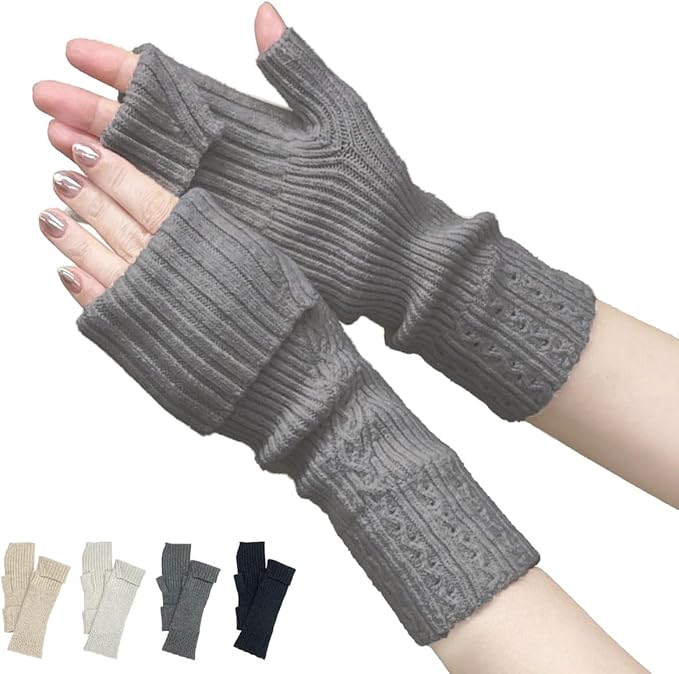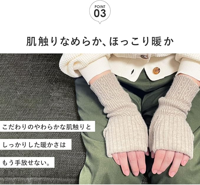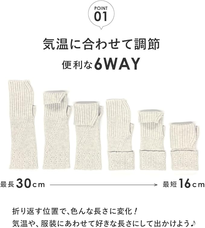 [Milieu] スマホ手袋 ハンドウォーマー レディース ケーブル編み 指なし 秋 冬 6way W3020-17