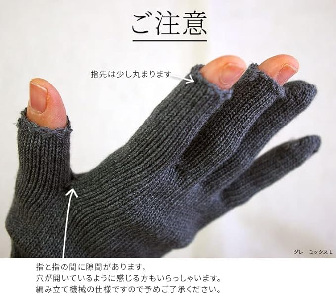[841(ヤヨイ)] ハンドウォーマー 3フィンガー スマホ 手袋 指なし 3本指 綿 日本製
