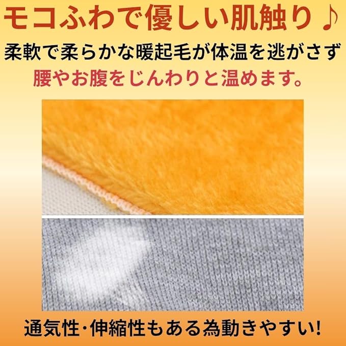 【優しい肌触りと保温性を兼ね備えた快適素材】 肌触りの良い裏起毛が腰部を保温し、自然な暖かさを保ちます。体温を逃がさず腰やお腹をじんわりと温めます。伸縮性がある為動きやすく快適です。 トルマリンや電気と違い体温で暖めるから熱すぎず就寝時にも安心です。