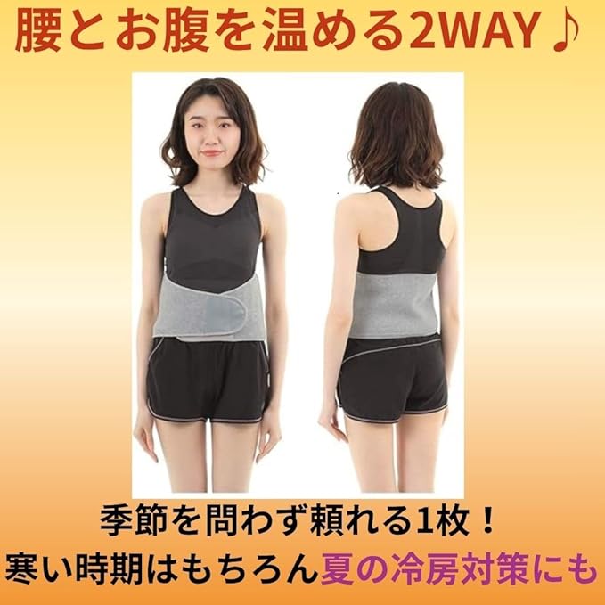 巻くだけで腰があったか。暖起毛部分を後ろに回せばお腹を温められる腹巻仕様の2WAY!腰とお腹をしっかり温めることで、寒さによる不調を防ぎます。特に冷えが気になる季節や、冷房の効いた室内での使用に最適です。