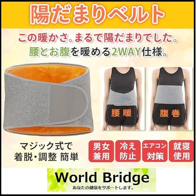 腰あたため World Bridge 腰暖ベルト 腹巻き 腰サポーターあたたか 腰暖め お腹温め 説明書付き (M)