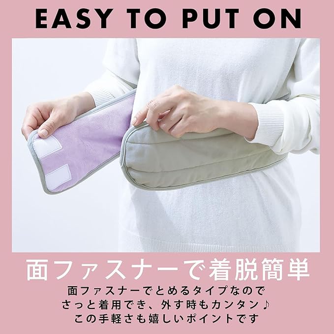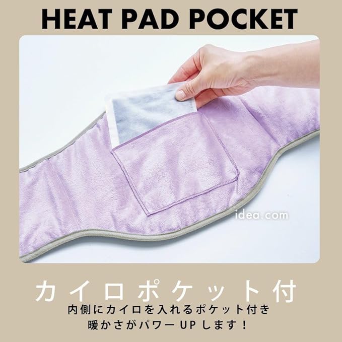 お家でホッと!部分あたため。お腹・腰をあたためて心地よく!綿入りでふんわり。服の上からも装着OK。 カイロポケット付なので、お手持ちのカイロを入れてあたたかさパワーUP!内側は起毛生地使用。面ファスナーで着脱簡単!