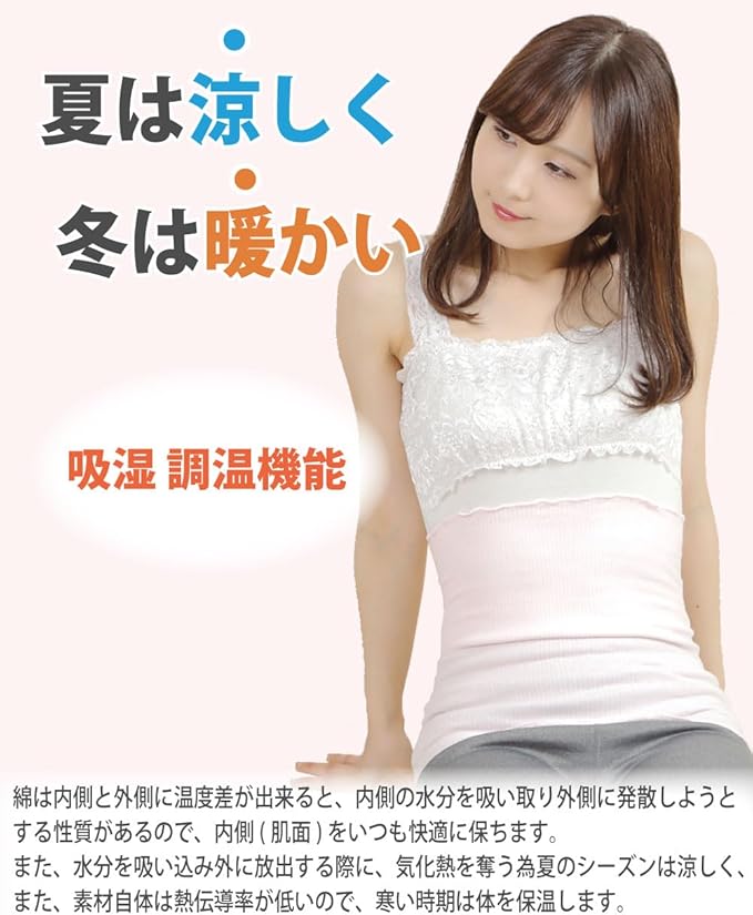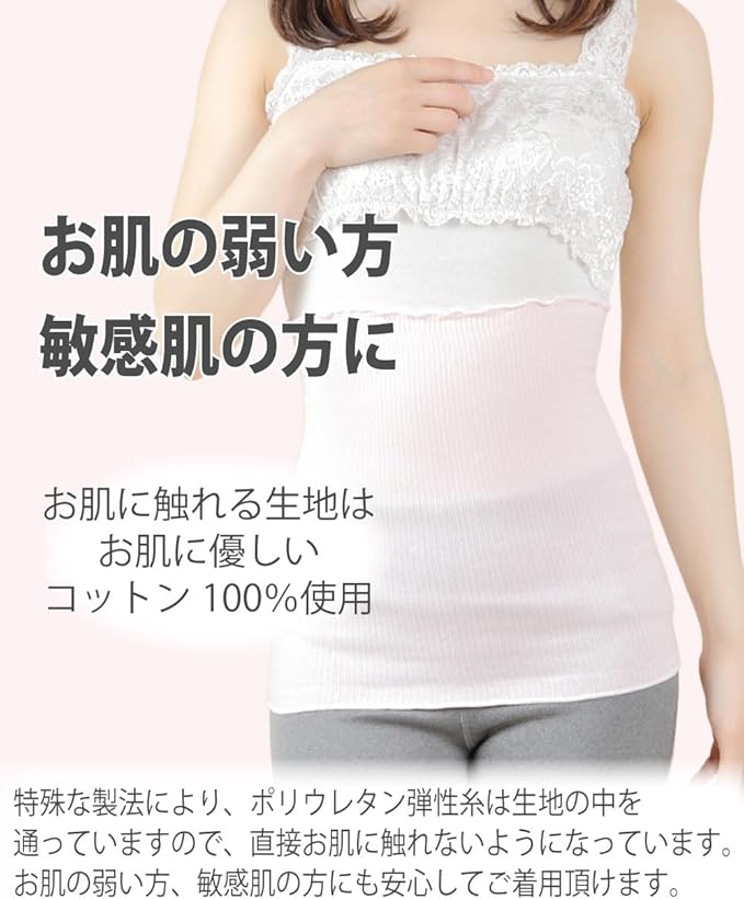 身生地はお肌に優しくやわらかな肌触りのコーマ糸使用。薄くて良く伸び締め付け感なく綿の持つほんのり自然な暖かさでほっこりお腹をつつみます。薄手でアウターに響きにくいので、お出かけの時はもちろん、締め付け感がなくほどよくフィットしますので就寝時にもお使いいただけます。 また、冷え取り・冷え対策から妊活・妊婦・マタニティ用としてもどうぞ。 お肌にやさしい自然なあたたかさを一度ご体験ください。