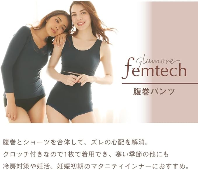 ✅【glamore femtechシリーズ】腹巻きとショーツが一体化した「腹巻パンツ」。寝ている間にお腹が出てしまう心配がなく、これ1枚で腰やお尻まで温めます。 寒い季節、睡眠時、冷房対策など1年中オススメです。妊活、妊娠初期のマタニティインナーとしても◎