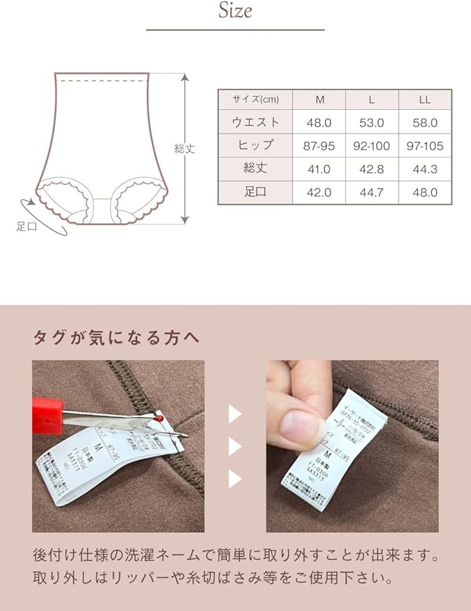 ✅【ちくちくしない】クロッチ部分は綿100%。ウエスト部分はノンゴム仕様で圧迫感が少ないこだわり設計。取り外し可能タグ&フラット縫い目だから低刺激。直接肌に触れても優しい仕様なので肌が敏感な方にもおすすめです。