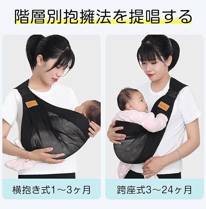 【安定】ヒップシートは伸縮性のある素材を使用。展開されたヒップシートのおかげで、赤ちゃんは背中に届き、安定していると感じることができます。肩への負担を軽減します。片手で簡単に持つことができます。