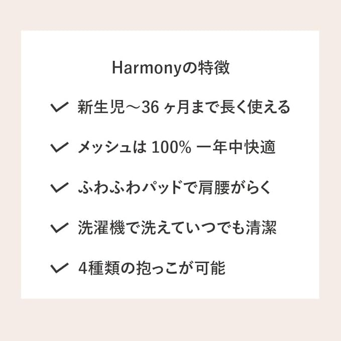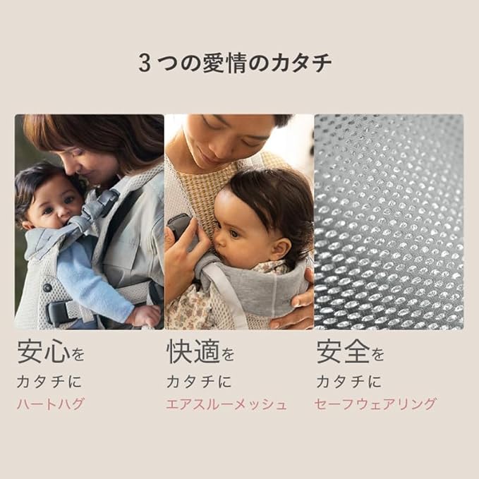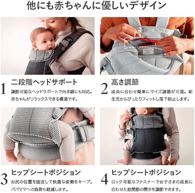 ベビービョルンの最上級モデル。新生児から3歳まで長く使える、フルメッシュタイプの抱っこひもです。対面抱っこ(ハイポジション)・対面抱っこ(ローポジション)・前向き抱っこ・おんぶの4通りの抱っこができます。厚いパッドが入ったショルダーベルト・バックサポートで肩と腰が快適です。