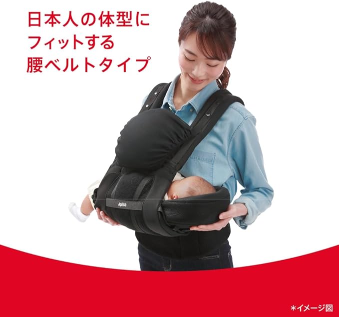 【生まれてすぐから使える】日本人の体型にフィットする腰ベルトタイプの抱っこ紐。新生児シートが付属。通気性の良いメッシュ素材。