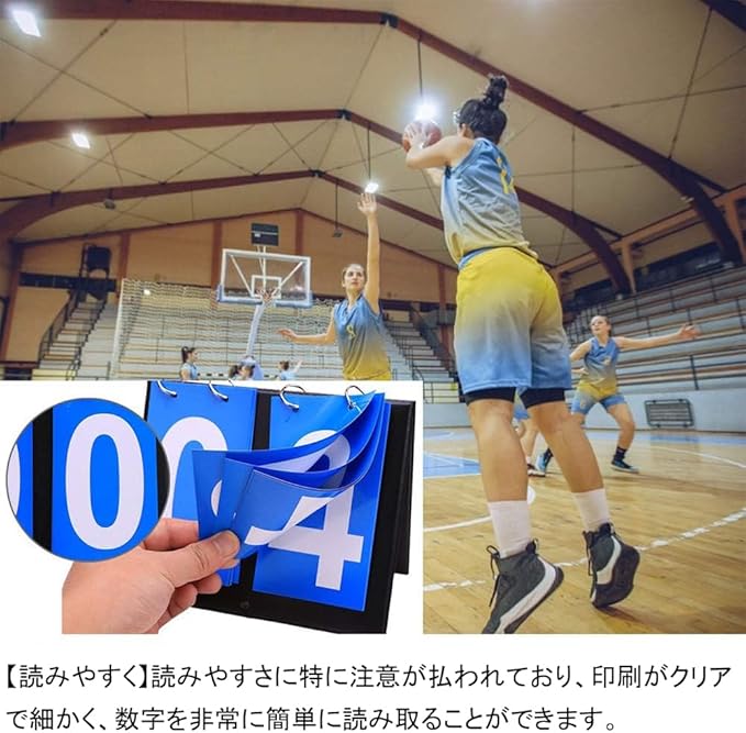 【読みやすく】読みやすさに特に注意が払われており、印刷がクリアで細かく、数字を非常に簡単に読み取ることができます。白い数字と赤と青の背景を使っているため、遠くからでも比分を簡単に読み取ることができ。