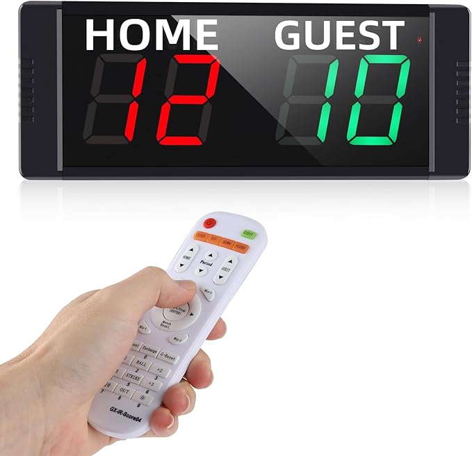 「リモコン付き」リモコンで採点して、いちいち手動で採点しなくて済みます。 本体の4.5メートル内ではリモコンで操作できますが、超える場合では不敏感で採点できないかもしれませんので、ご注意ください。