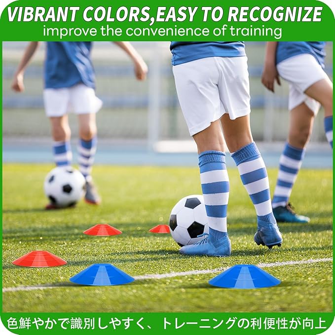 ✅色が豊富 識別が容易:マーカー サッカー高い識別度を持つ明るい色を使用して、芝生と各種訓練場で発見しやすく、訓練効率を高める。