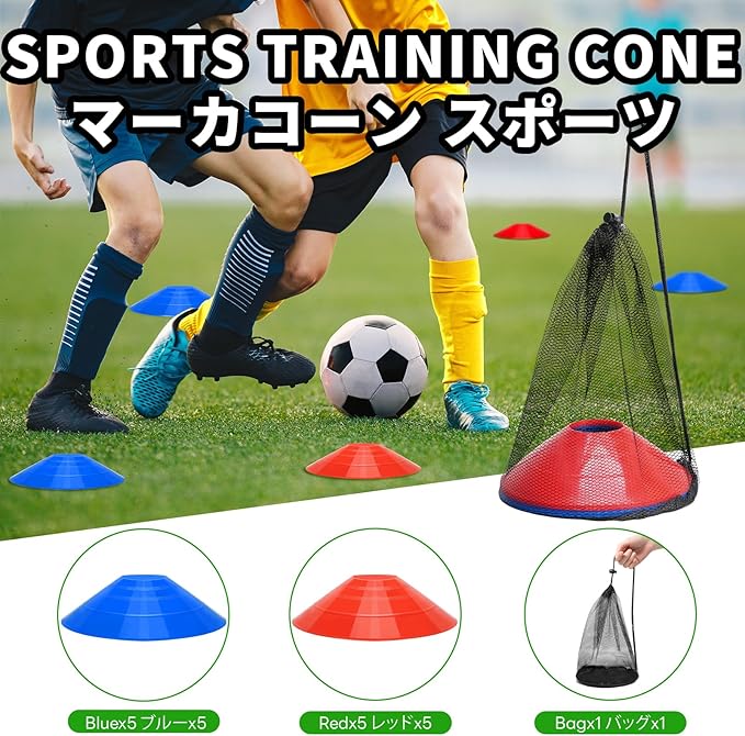 ✅製品は以下を含む:マーカーコーンx10個、袋x1個。(赤x5、青x5)