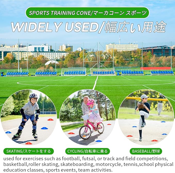✅サッカー マーカー用途が広い:サッカー、野球、テニス、陸上、ローラースケート、フットサルなどの各種スポーツに適用する。自転車やバイク、ドローンでの練習にも使えます。目標、距離、エッジ、境界マーカー、障害物、訓練速度、正確性、敏捷性を設定するために使用されます。学校、運動会、団体競技や部活の理想的な選択です。
