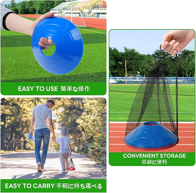 ✅サッカー コーン携帯に便利:収納袋が付いており、たい積で保管でき、スペースを占有しない。軽量ですが、風に吹き飛ばされにくく、子供たちも容易に持ち運ぶことができます。