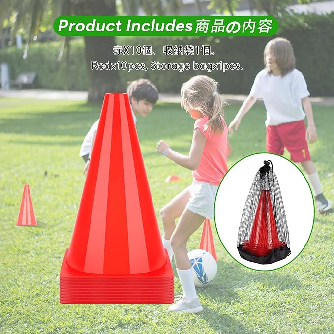 ✅製品は以下を含む:マーカーコーンx10個、袋x1個。(赤x10)
