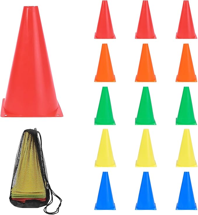Charmoon カラーコーン 15個セット 8cm / 18cm / 23cm 5色 収納袋付き 軽量 柔らか 壊れにくい ミニコーン