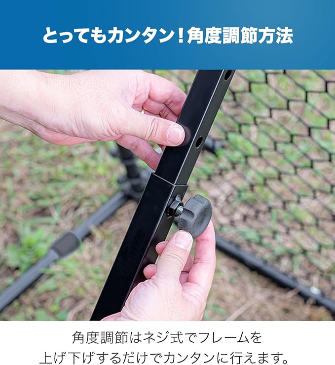 ✅【12段階の角度調節】 細かく12段階、約60-120 の角度調節が可能。前方に倒すことでゴロ球の練習ができ、後方に倒すことで浮き球の練習ができます。角度調節はネジ式でフレームを上げ下げするだけでカンタンに行えます。 ✅【室内練習にも】 フレームにはキズ防止・すべり止めがあるので、家の中や体育館など室内練習にもオススメ。雨の日も自主練習することができます。