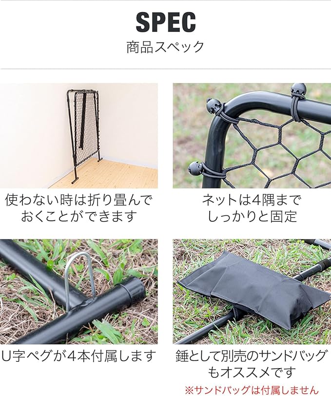 ✅【ゴロ球から浮き球、シュート練習まで】 壁打ちのように練習ができるリバウンドネット。角度調節をすることでゴロ球や浮き球の練習、シュート練習の自主練習に最適アイテム。トラップやダイレクトパスの練習にも◎ ✅【丈夫なハニカム型ネット】 蜂の巣のような六角形の形をしたハニカム型。四角形より耐久性に優れているのが特徴です。