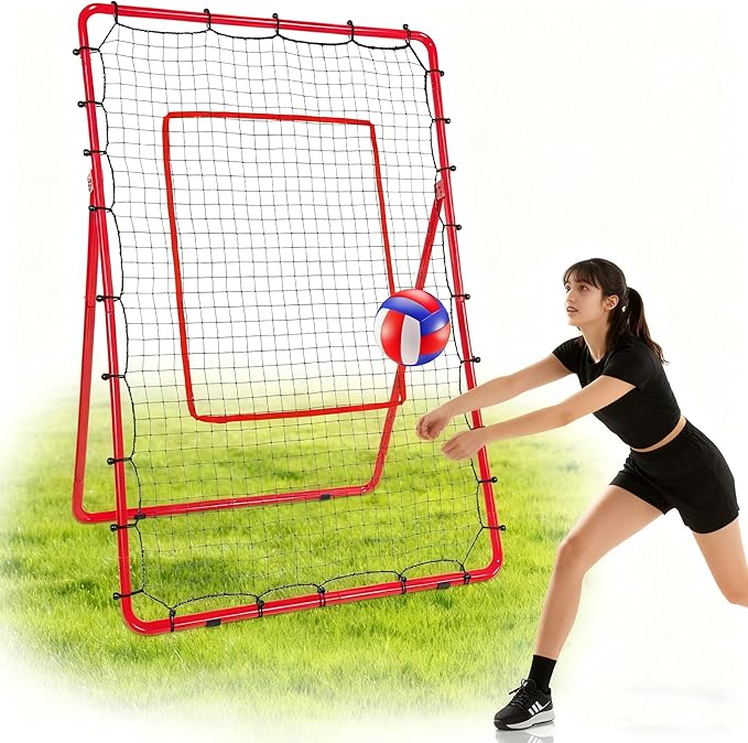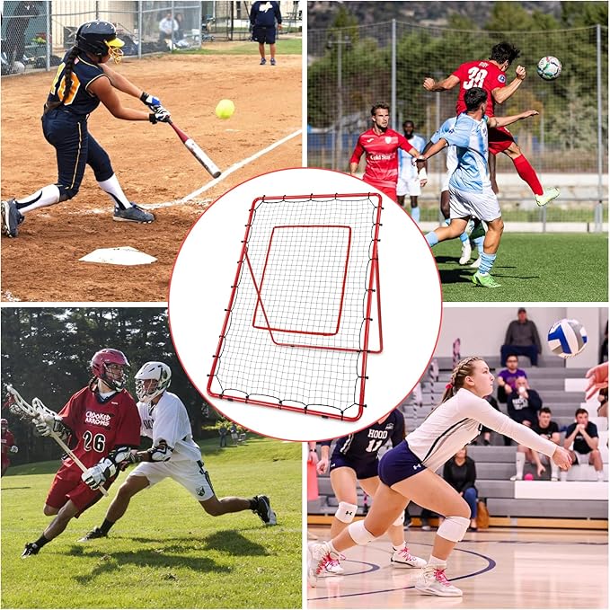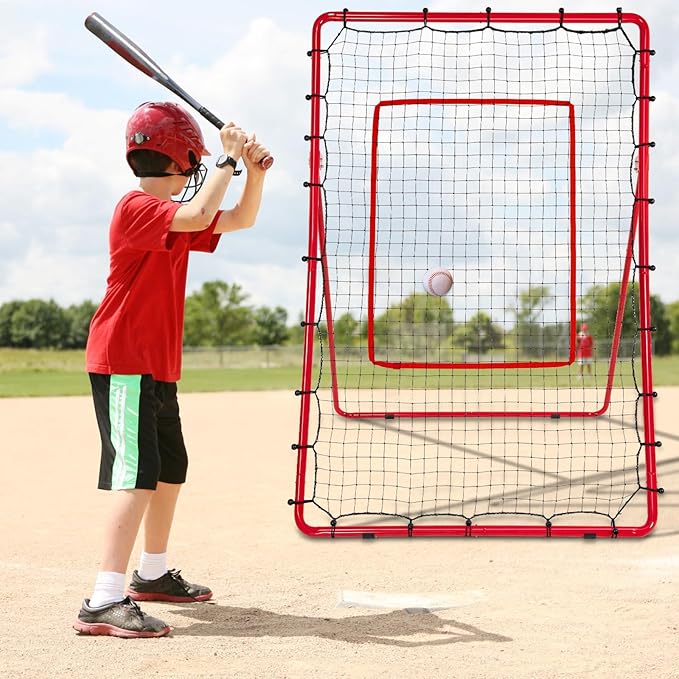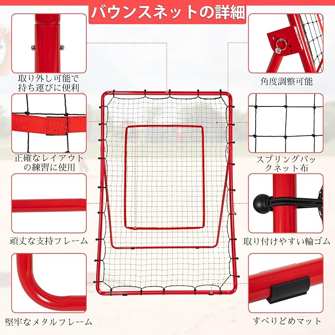 AKOZLIN リバウンドネット 120 183cm 5 段階角度調整可能 壁打ちネット 練習用ターゲット&収納バッグ付き 練習グッズ 室内練習 自宅 ソフトボール・野球・ホッケー ・バレーボール・バドミントン適用 レッド
