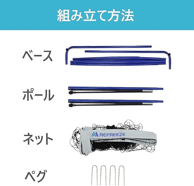 ※ご購入後1年間保証(ベース・ポールは1年間無制限、ネット・収納バッグは1年間1回までご使用による破損・不具合にも保証対応をさせて頂きます。当店は日本国内の会社が直接運営を行っております。万が一の不具合にも迅速に対応させて頂きますのでご安心してお買い求めください。ご連絡方法[販売者名クリック→REFREEZE(リフリーズ)に質問する]より不具合部分のお写真とともにメールにてご連絡ください。)
