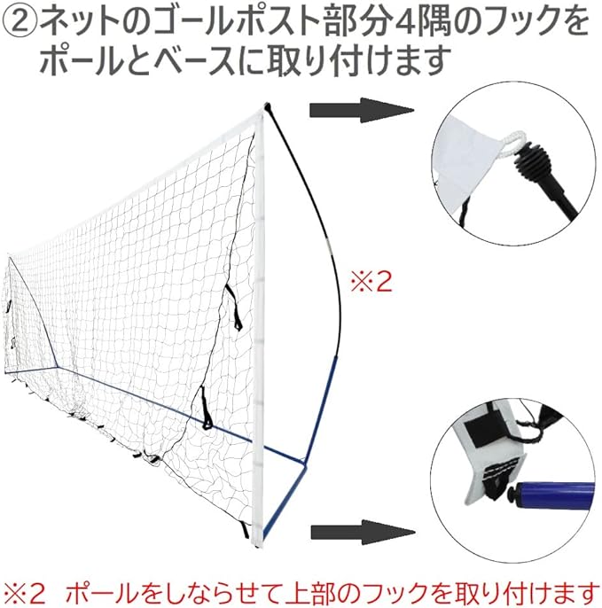 【セット内容】ゴール 1、固定用ペグ 4、収納バッグ 1、説明書 1