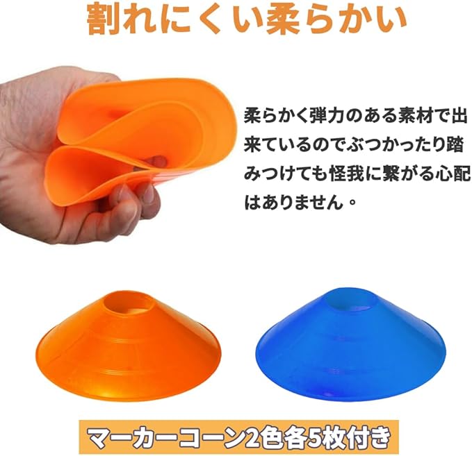 【マーカーコーン付き】柔軟性と耐久性を兼ね備えるPE素材を採用して、柔らかく踏んでも割れにくいです。