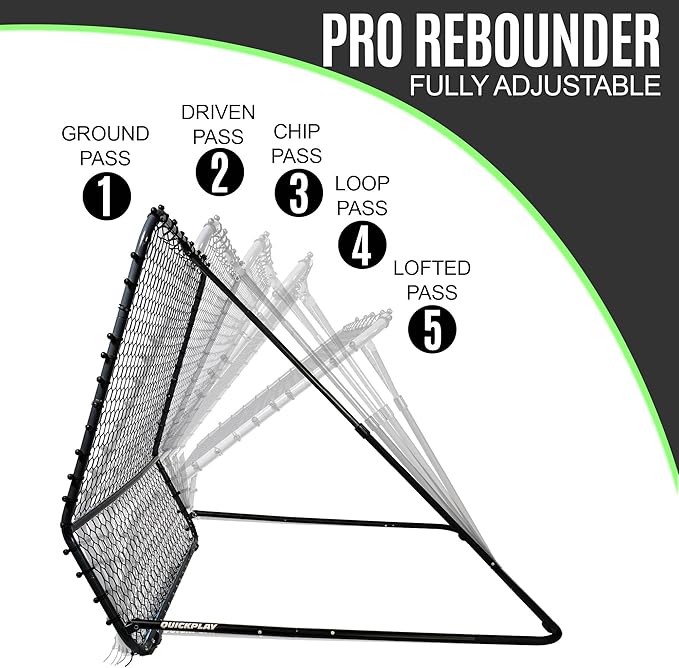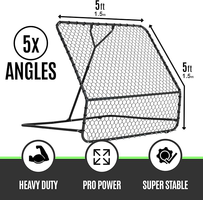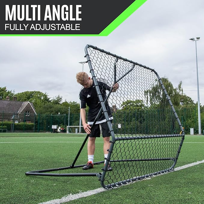 ハイパスバックとローパスバック。ハイテンションリバウンド。角度調整が簡単。非常に丈夫な構造。全天候型パウダーコーティングされたスチールフレーム。このプロフットボールリバウンダーで、パスやオフフロアタッチで作業できます。 5フィートの正方形で、広い面積で作業でき、あらゆる能力のプレーヤーがテクニックとボールコントロールのトレーニングと向上に役立ちます。 ボールが戻る方法を変えるように角度を調整し、ゲーム内のさまざまな状況でのトレーニングに役立ちます。 Pro Rebounderシリーズは、組み立ててトレーニンググラウンドに置いておくように設計されており、高品質のパウダーコーティングスチール製で、あらゆる気象条件下でうまく機能するように設計されています。