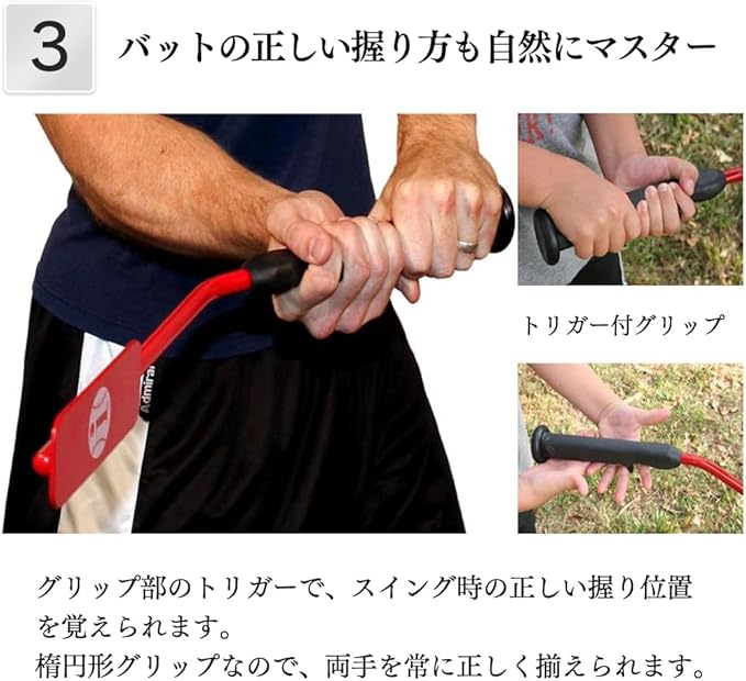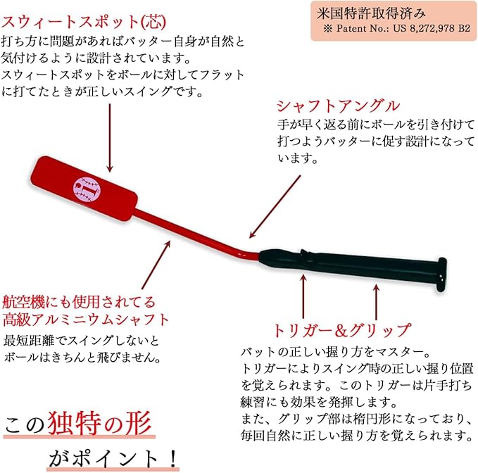 【効果】ミート力アップ、スイングスピードアップ、飛距離アップ、フォームの矯正、試合前のフォームの確認、ボールを芯でとらえられる、ボールを見極められる、三振が減る<br>【練習方法】素振り、ティーバッティング、トスバッティングなど。*使用の際は周りに何もない安全なところで練習してください。