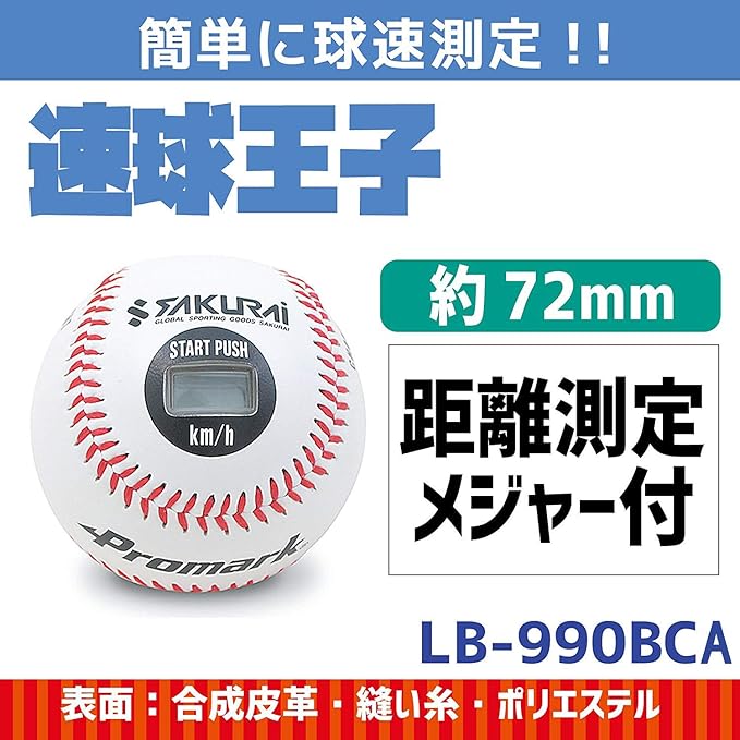 速球王子(球速測定ボール) LB-990BCA」は、18mと16mでの計測が可能な野球ボールです。190km/hまで測定可能。距離測定メジャー付き。