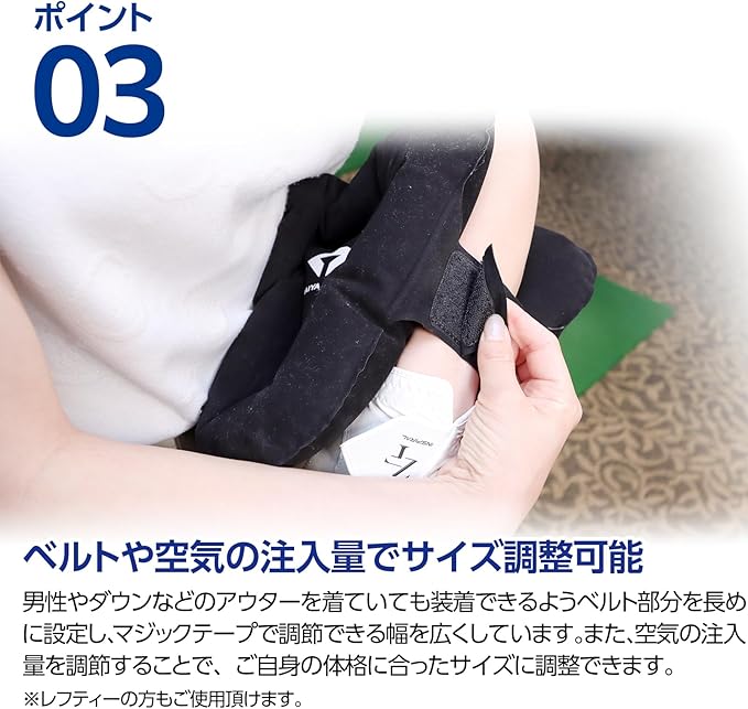 空気の量を調節することでフィット感を調節できます。