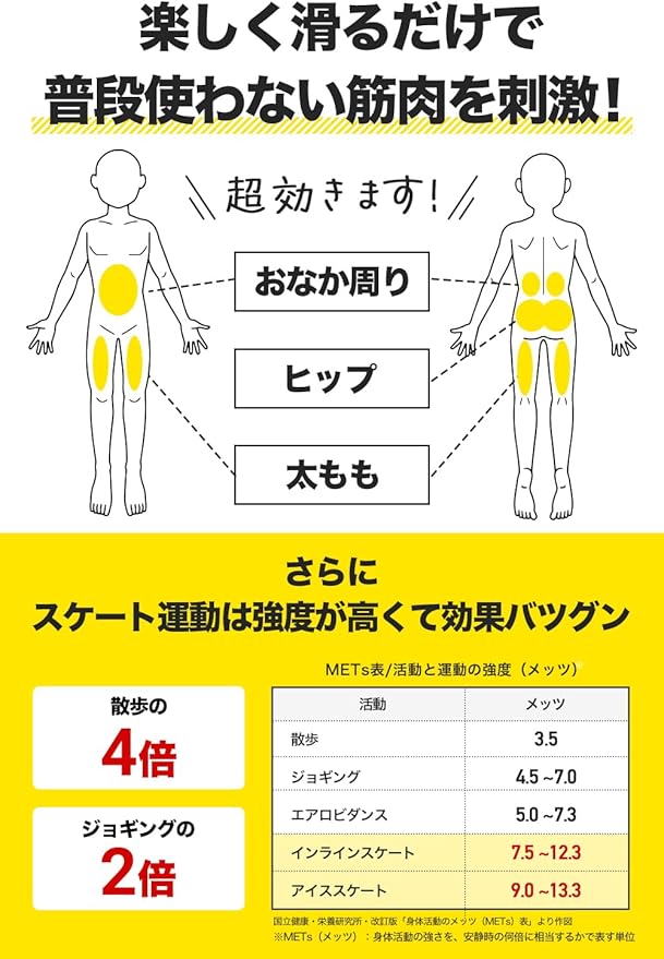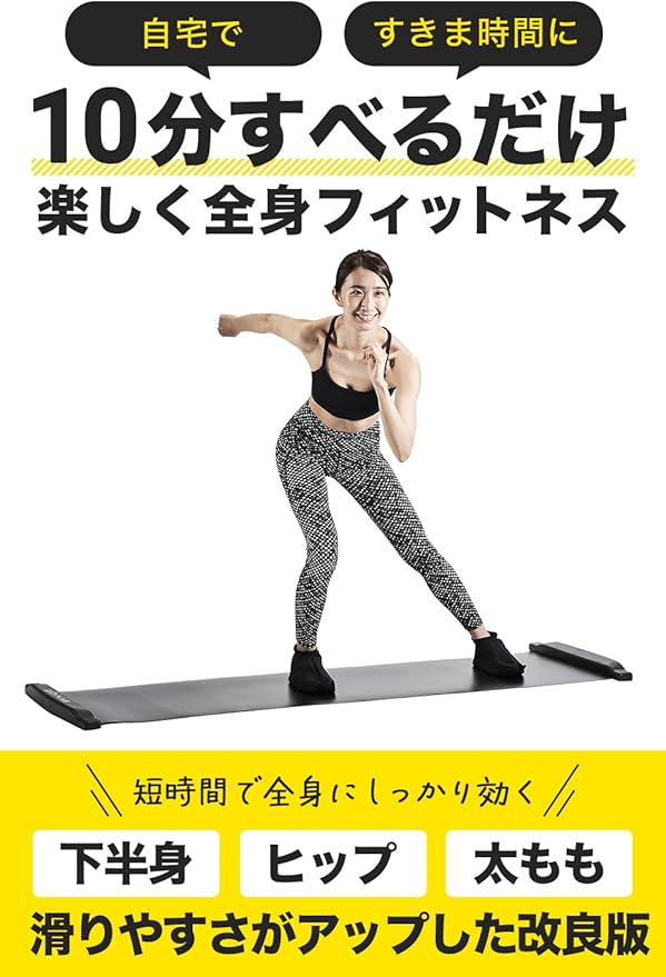 【気軽にエクササイズ/有酸素運動】スケートマットを拡げて、履いて、滑るだけの3ステップ!スケーティングボードの上を左右にスライド、家の中なのに本当にスケートしてるみたい!楽しく滑っている間に心拍数もあがり太もも、ヒップやウエストを刺激、脂肪が燃焼され全身引き締まったボディに。楽しく有酸素運動ができるダイエット器具 スライド ボード おすすめの自宅 トレーニング器具です。