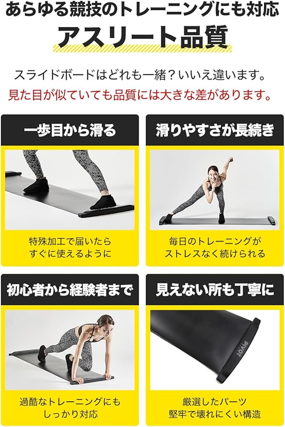【豊富なトレーニングメニュー】左右に滑るだけじゃない!両手を前について片脚を交互に引き上げたり両脚を同時に引き上げたり腹筋を絞るように意識してスライドトレーニング スライドボードを使用して多くのメニューを組むことができます。