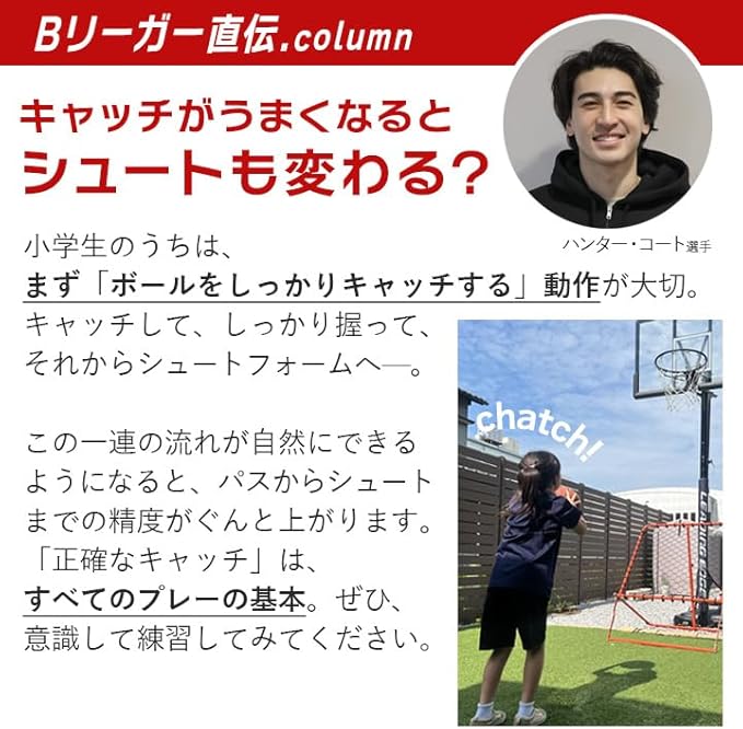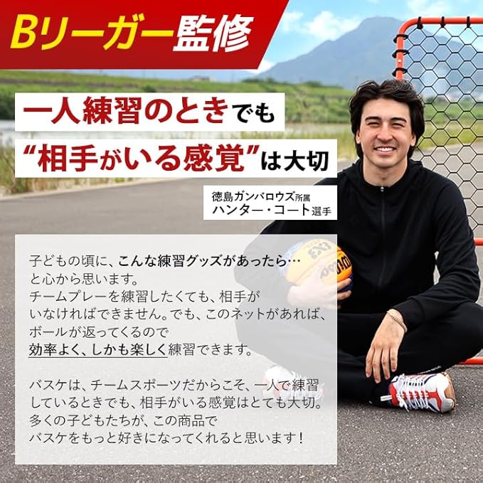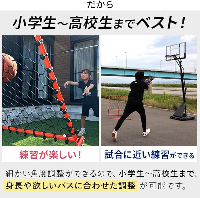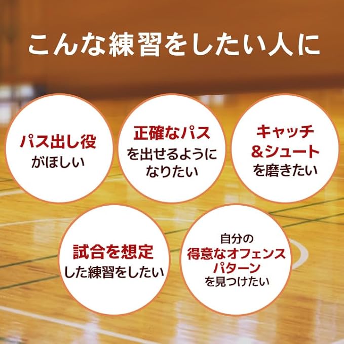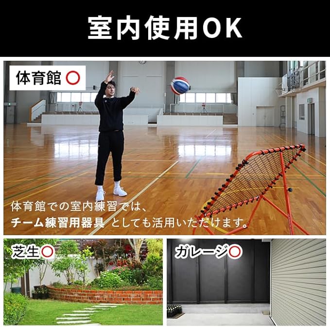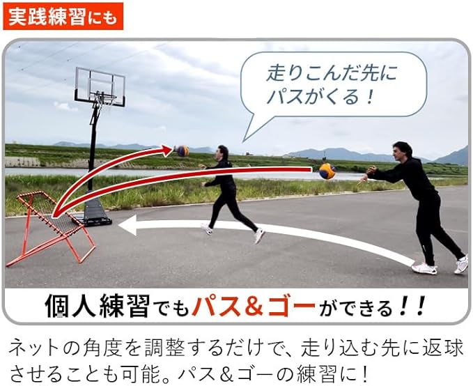 【壁いらず、相手いらず】 一人でも“実戦パス”練習を実現。バスケットゴールと一緒に使えば、パス→キャッチ→シュート練習が可能。胸元に返球される構造のため次への動き出しがスムーズに行えます。体育館はもちろん、自宅練習にも対応した、個人スキルを伸ばすための新定番アイテムです。