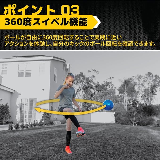 360度スイベル機能: ボールが自由に360度回転することで実践に近いアクションを体験でき、ボールを追いかける必要がありません。