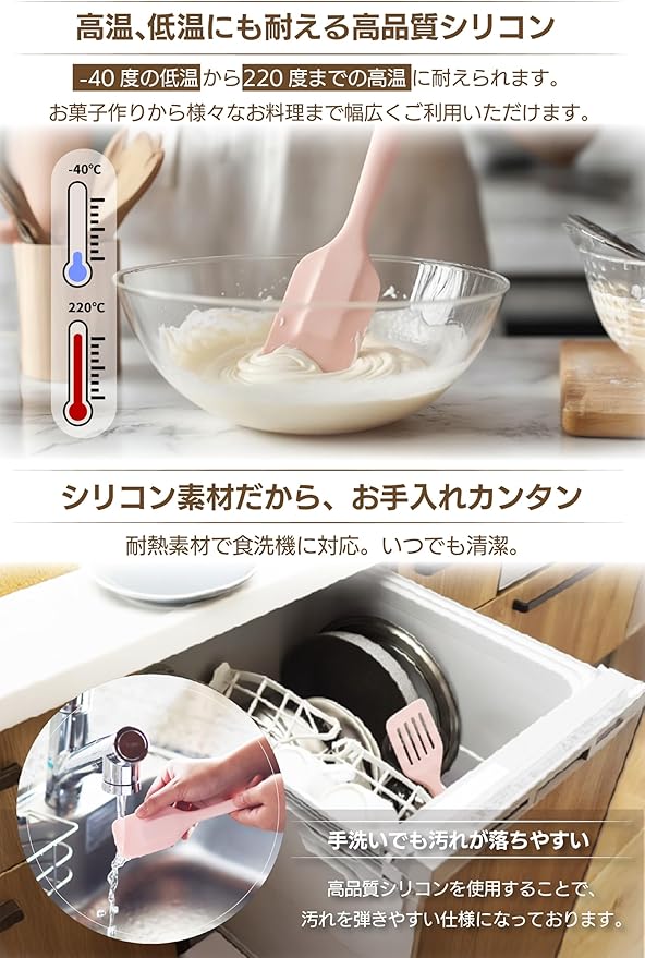 熱伝導しにくい、耐熱温度220℃まで変形しない。食器洗い乾燥機に対応可