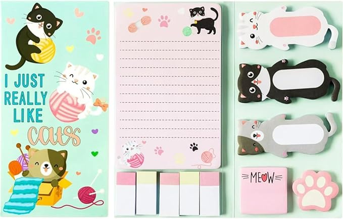 【ユニークなデザイン】単調なものは拒否!さまざまな面白い子猫の付箋を提供!セットのカバーと内部の付箋は猫をテーマにデザインされており、付箋のパターンはかわいく、明るい色合い(ピンク、黒、グレー、白など)です。子供たちが気に入ること間違いなしです。