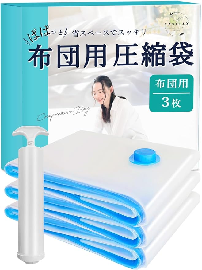 【お部屋を気持ち良く衣替え】無理に押し込む収納から卒業!衣類だけではなく、面積を取りやすい布団もペッタンコ!掃除機を使用すると一瞬で圧縮でき、誰でもラクラク衣替えできます!専用ポンプ付きで掃除機が無い方も使用可能です!