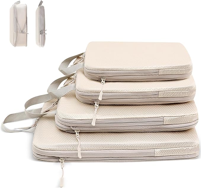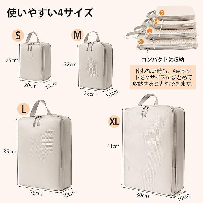 【2025年最新】旅行用圧縮袋 トラベルポーチ 便利旅行圧縮バッグ 4点セット 可変スペース 衣類仕分け 圧縮袋 旅行 出張 衣類 整理便利グッズ トラベル パッキングポーチ スペース節約(ベージュ)