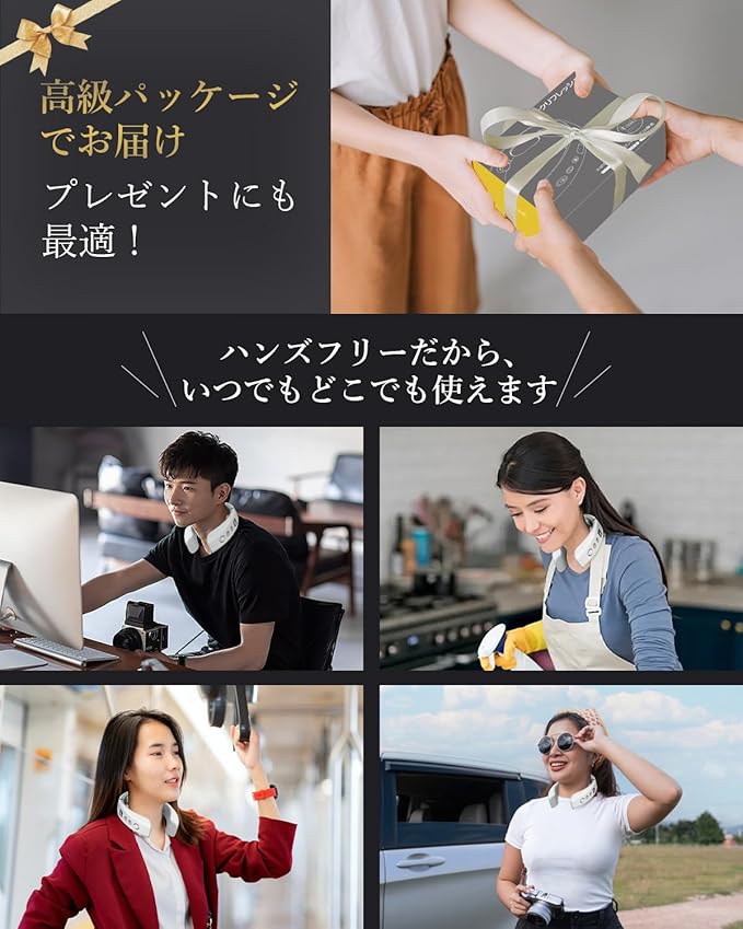 【男性にも女性にも最適なプレゼント】リラクゼーションは家で掃除をする時も、在宅ワークする時も、図書館で勉強する時も、アウトドアでキャンプをする時も、釣りの時も、通勤時の電車でも男女どちらも使用できます。コードレスなので、自由に持ち運んだり、外出先で掛けたり、バッグに入れたりすることができます。いつでも手軽に疲れを取りたい方におすすめです。また、リラクゼーションを求める現代人への贈り物として、自分へのご褒美に、大切な人への プレゼントとしても大変喜ばれます。