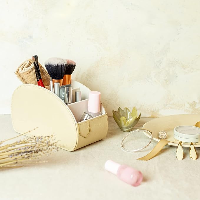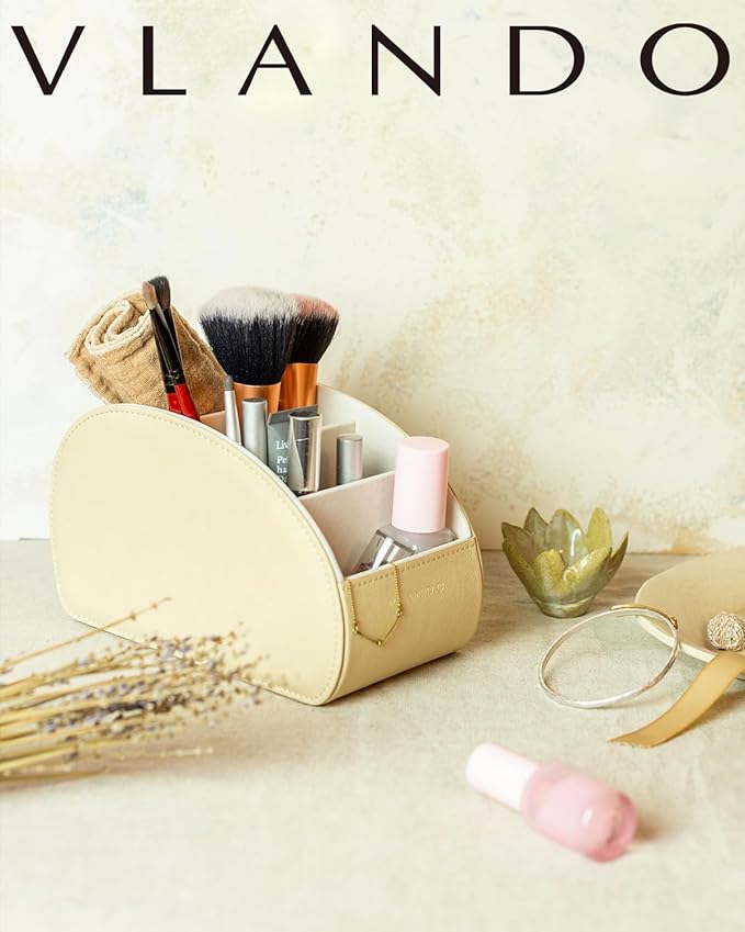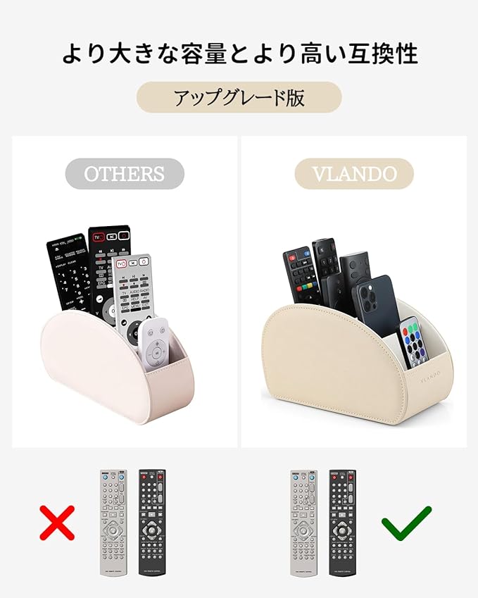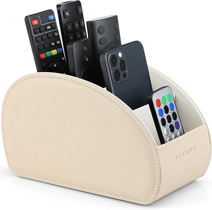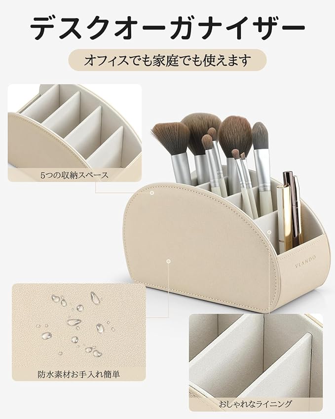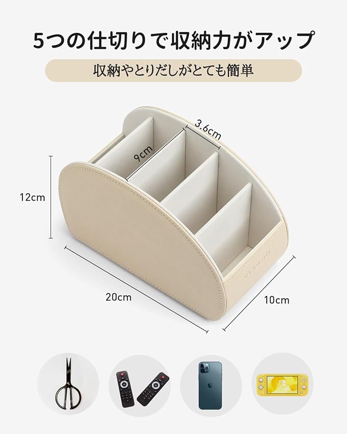 Vlando リモコンラック レザー リモコン 収納 テーブル 5格仕切り リモコンスタンド おしゃれ 多機能収納ボックス 大容量 文房具 卓上小物 ベージュ