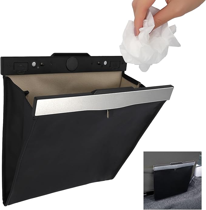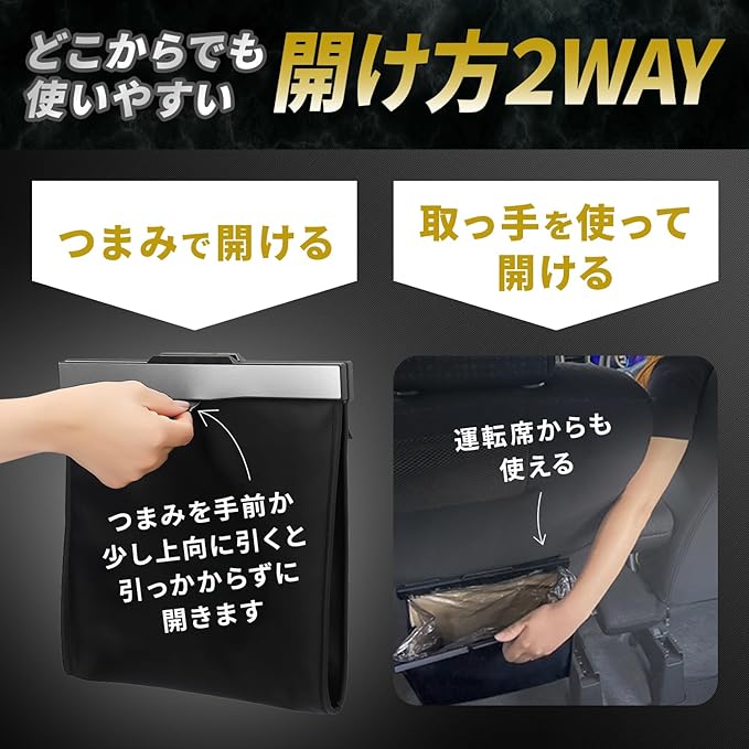 【Wロック】マグネット式で運転席からでも片手でサッと開閉可能、閉じた際は中のゴミを隠し、さらに簡易ロック機能がドライブ中の振動による不意な開放や、小さなお子様のいたずらを防ぐ