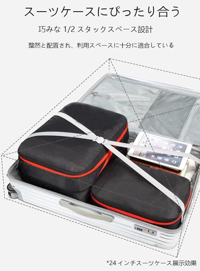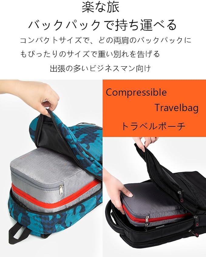 【最大50%スペース節約】衣類を圧縮袋に入れて圧縮ジッパーを閉じるだけで、スーツケース内の衣類スペースの約50%を節約できます。スーツケースの中がすっきり片付きます。旅行、出張、ホテル滞在などに最適な収納バッグです。