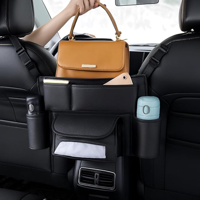 車用 ハンギングバッグ 改良モデル 箱ティッシュ 対応 大容量 ドリンクホルダー 拡張 小物 収納 多機能 吊り下げ シートバッグ