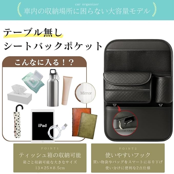【日本語取説付き】 Chicer シートバックポケット 車内収納 多機能 後部座席 収納