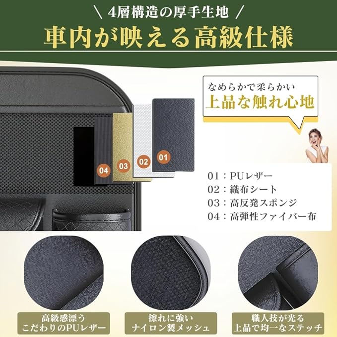 ✅【高級感あふれるPVCレザー素材】耐久性と美しさを兼ね備えたPVCレザーを使用し、車内に上質な雰囲気を演出します。