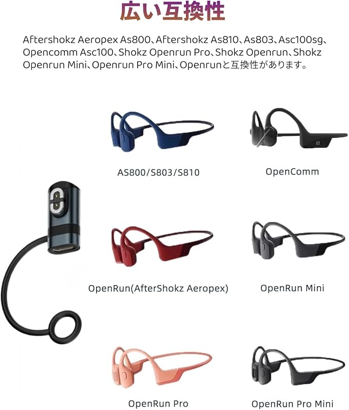 【対応機種】Aftershokz Aeropex AS800、Aftershokz AS810、AS803、ASC100SG、Opencomm ASC100、Shokz Openrun Pro、Shokz Openrun、Shokz Openrun Mini、Openrun Pro Mini、Openrun Air に対応。幅広い互換性で安心してお使いいただけます。