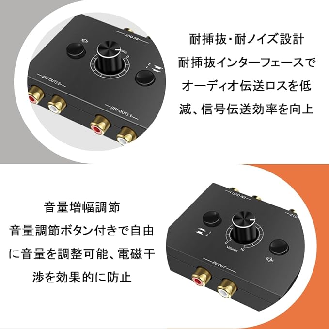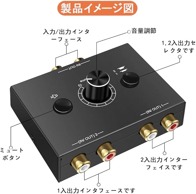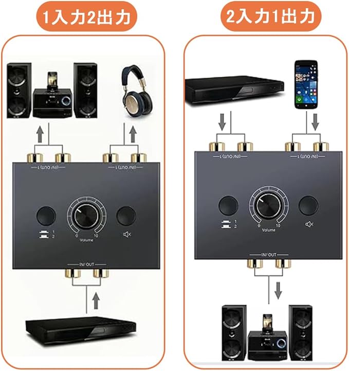 限定商品 2-Way 双方向 RCA ステレオ オーディオ スイッチャーHiFi AV L/R サウンドチャンネル 1入力2出力 / 2入力1出力 DVD・ステレオスピーカー・CDプレーヤー対応 RCA ステレオセレクター ミュート ボタン付き プラグ アンド プレイ
