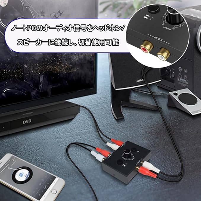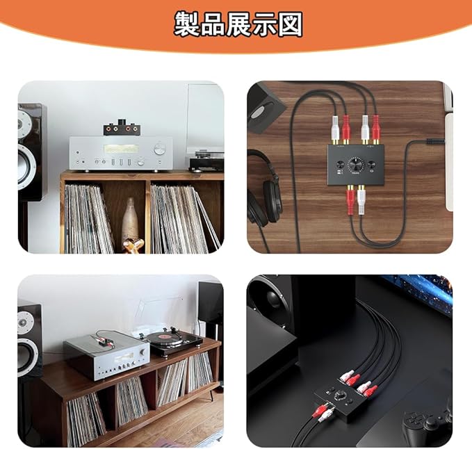 【幅広い互換性】 CDプレーヤー、ターンテーブル、テレビ、アンプ、アクティブスピーカーなど多様な機器に対応。様々なオーディオ機器間の切り替えニーズを満たします。